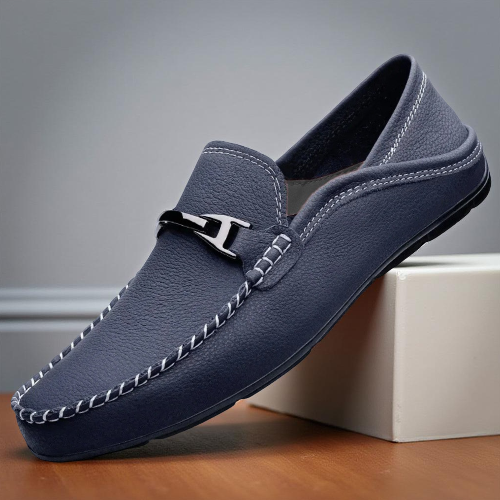Handmade from finest leather, these Italian loafers deliver all-day comfort with a cushioned insole, smooth inner lining, and hand-stitched detailing throughout. Finished with a sleek metal accent across the front for a premium look.