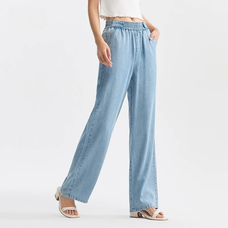 Lightweight and effortlessly relaxed, these wide-leg jeans offer all-day comfort with a soft denim feel. Designed with an elastic waistband and spacious pockets for easy wear.
